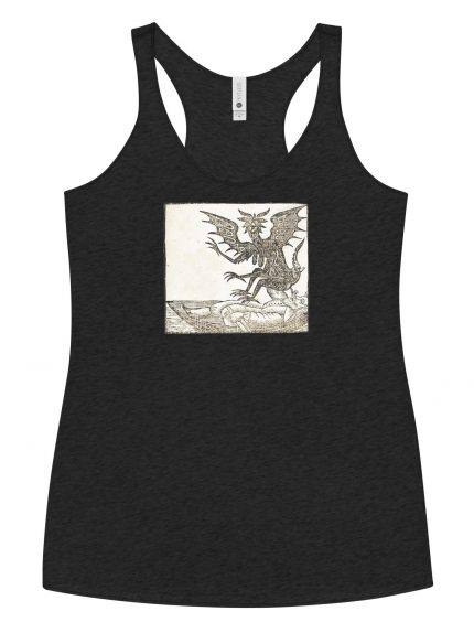 This racerback tank is soft, lightweight, and form-fitting with a flattering cut and raw edge seams for an edgy touch. • High quality printed with this image of a Illustration from the Nuremberg Chronicle, by Hartmann Schedel (1440-1514). Werewolf, wolfman, lycanthrope folklore and mythology • 50% polyester, 25% combed ring-spun cotton, 25% rayon • Fabric…